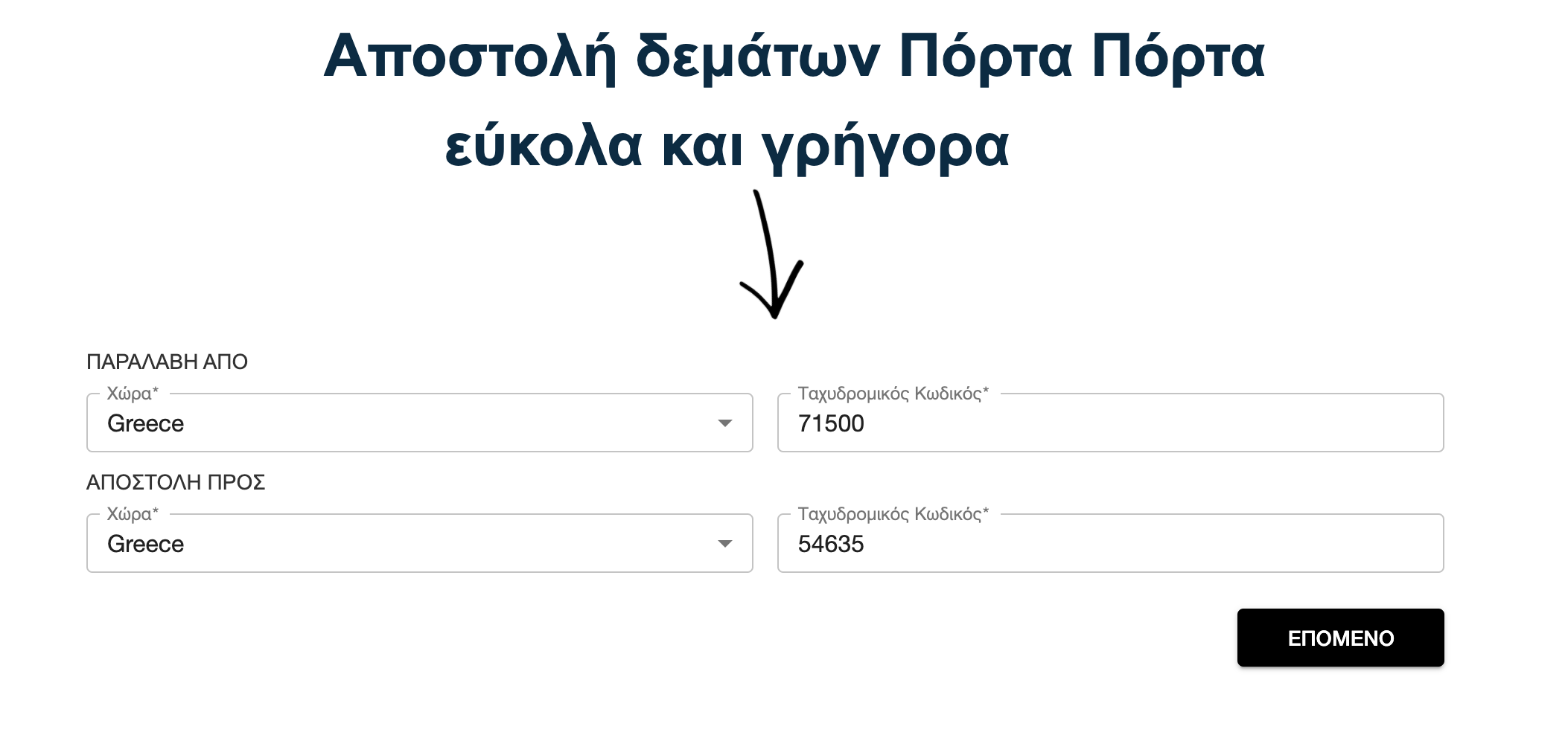 Στη συνέχεια θα πρέπει να συμπληρώσεις τον Ταχυδρομικό κώδικα του παραλήπτη του δέματος ( για να γνωρίζουμε πού θα γίνει η αποστολή του)