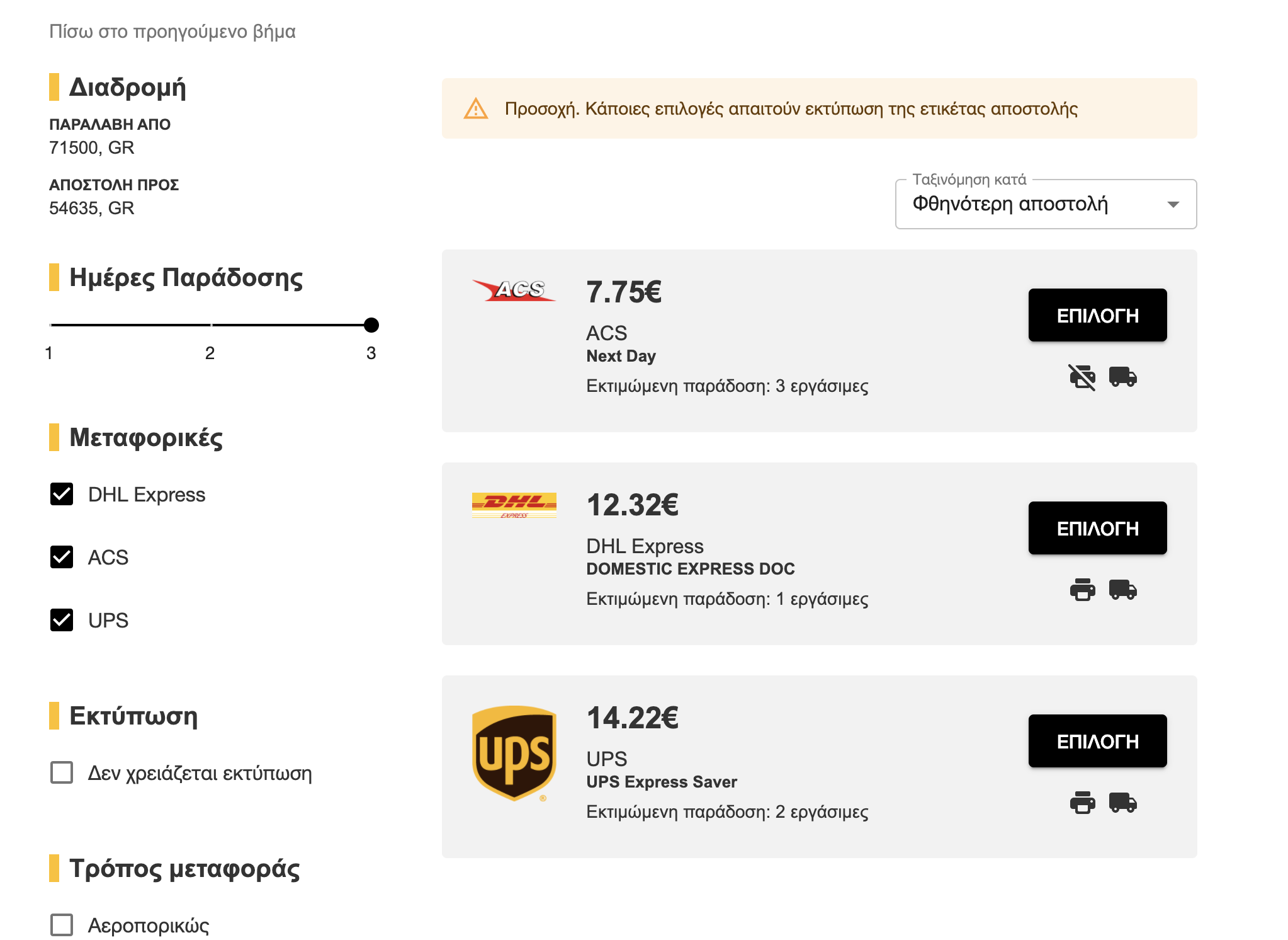 3. Συγκρίνεις τιμές για την αποστολή του δέματος (ή των δέμάτων) σου